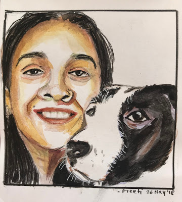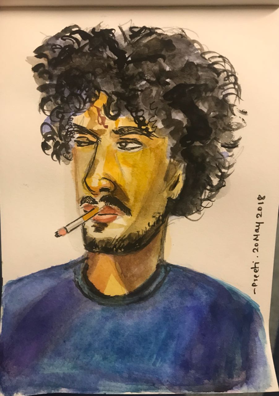 So yesterday, I made a watercolour portrait of her. Any artist will tell you that water colour portraits are very hard to make, as you cannot correct the mistakes, and you have to work in layers. Also you can't control the washes, and hence it is difficult to get precision.