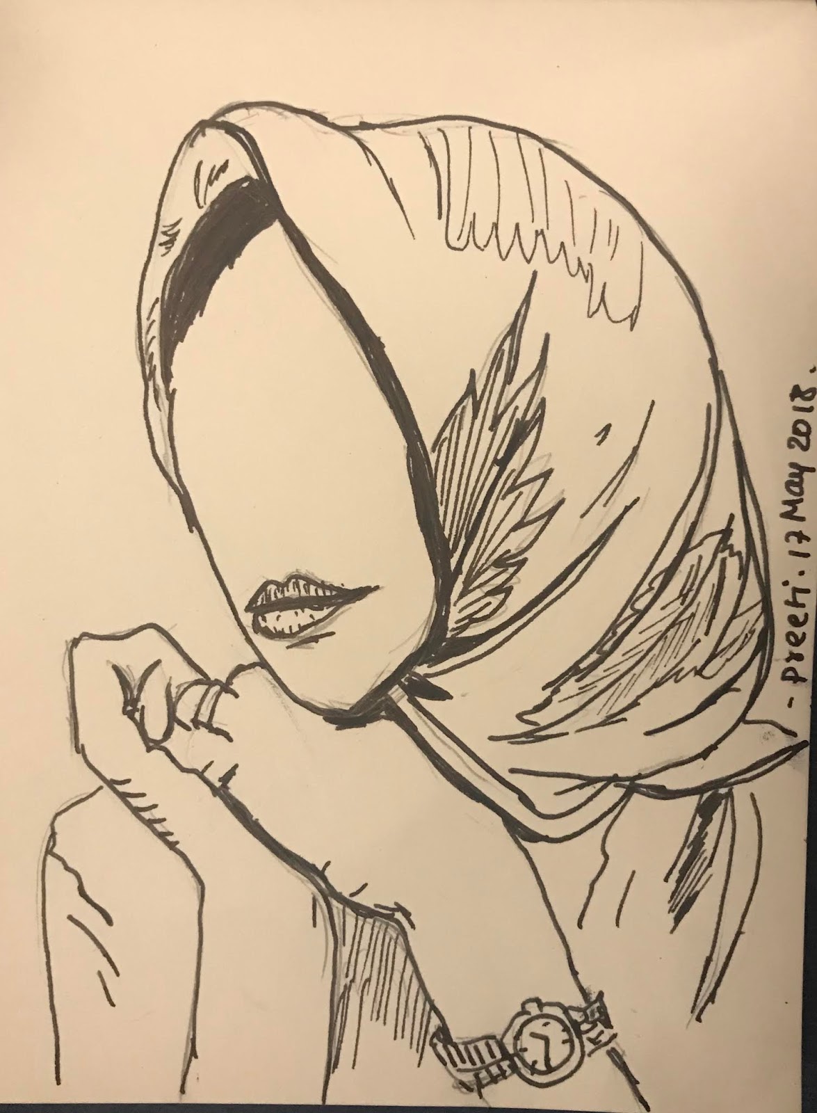 Hence for today's drawing, I loved the instruction we received. We were to make a portrait (from the reference photo given) without using any facial features!