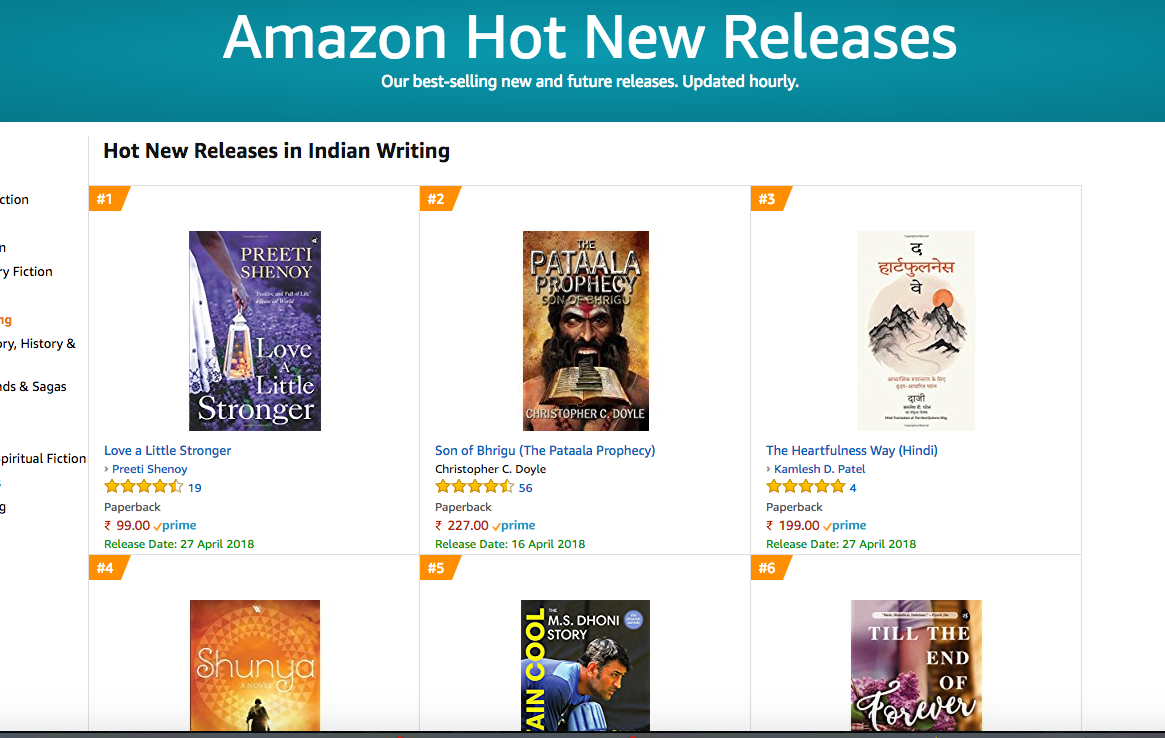 It is currently NUMBER ONE on Hot new releases on Amazon in Indian Writing.