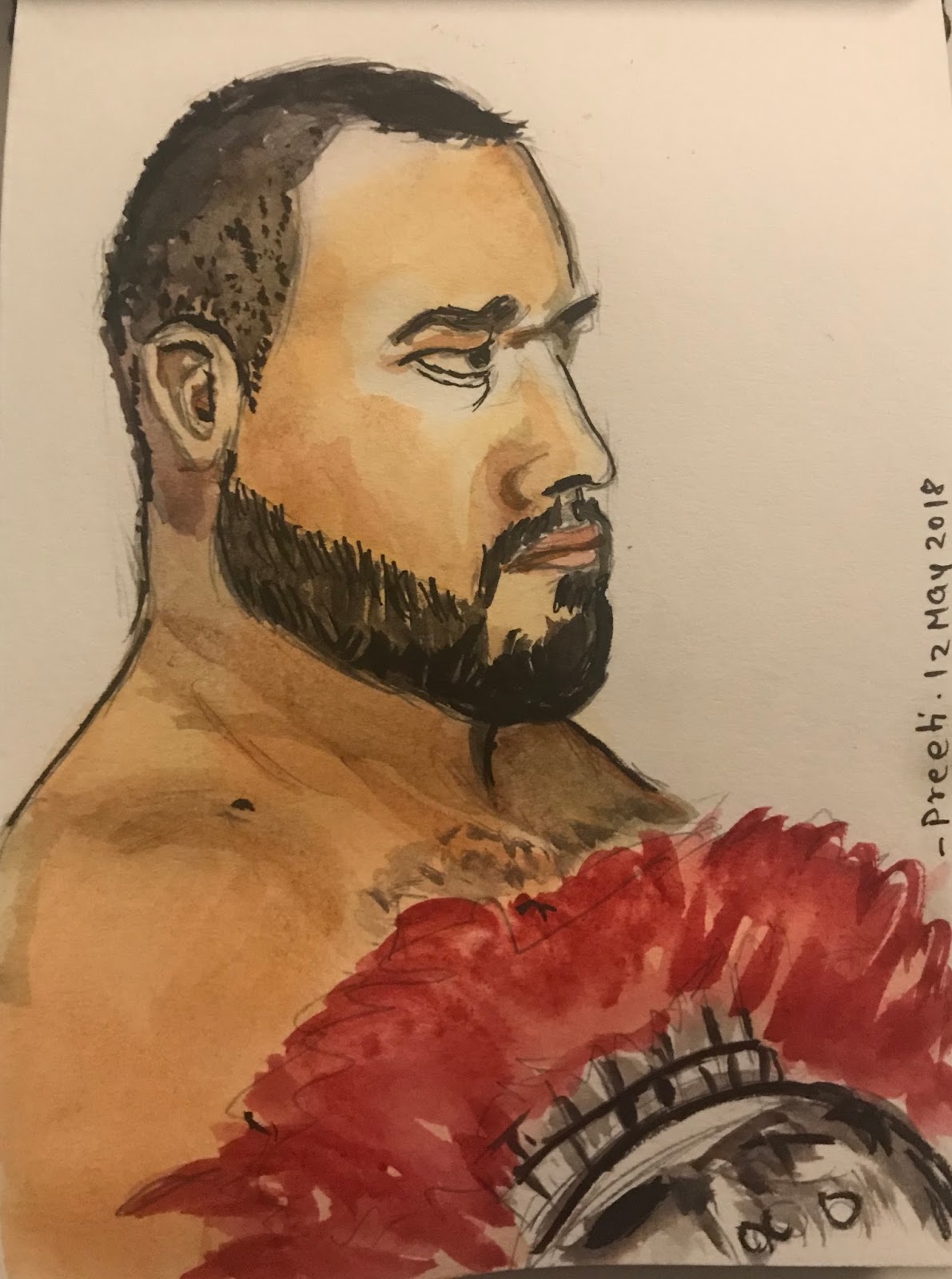 This is the portait I made today with water colors and pen. You can see one more that i made as well as the original reference photo on my Instagram art page.