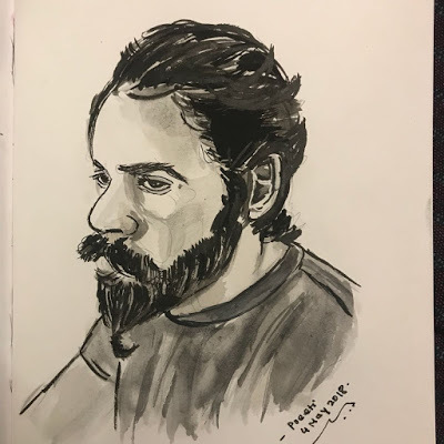 As per my tutor's instructions I had to first study the model (Abe Linares) by making many sketches of his different expressions.