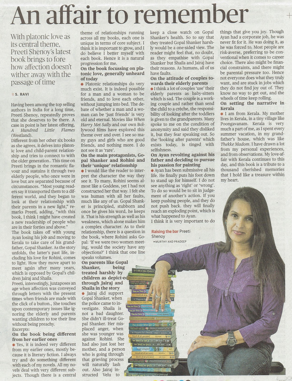 Several newspapers have carried write ups about A Hundred Little Flames and you might have seen it in the media. But the one I liked the best was the Hindu's interview. I am sharing it here.