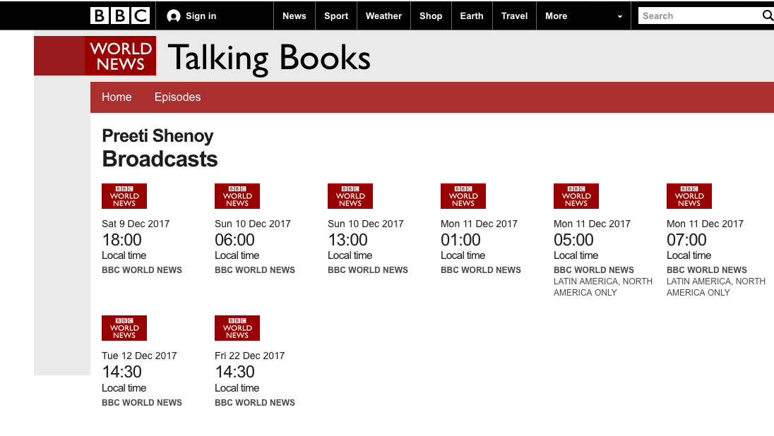 Today my interview on BBC world was re-telecast for the 15th time!! See the list HERE