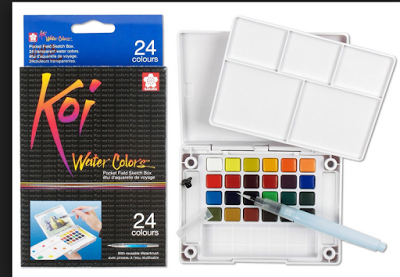 Materials I use: Water colour: Sakura Koi (24 color paint box). This is what it looks like.