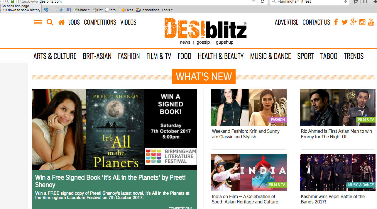 Desi Blitz which is Britain's award winning, leading Asian web-magazine, has been co-ordinating the whole event, and have been corresponding with me and my publishers over the last many months to make this happen.