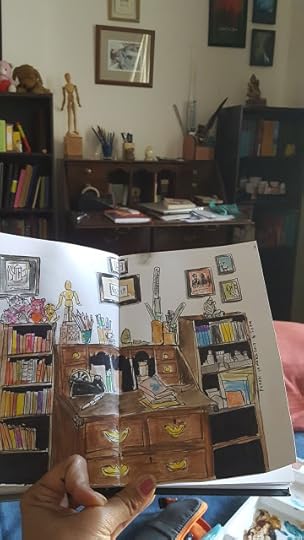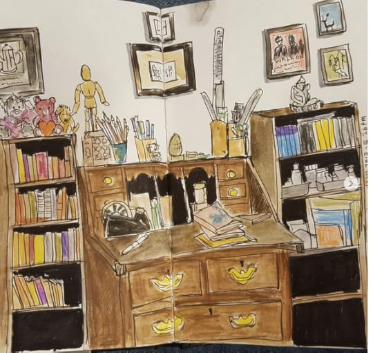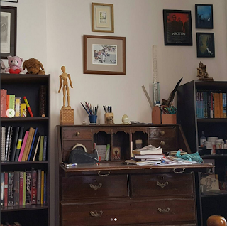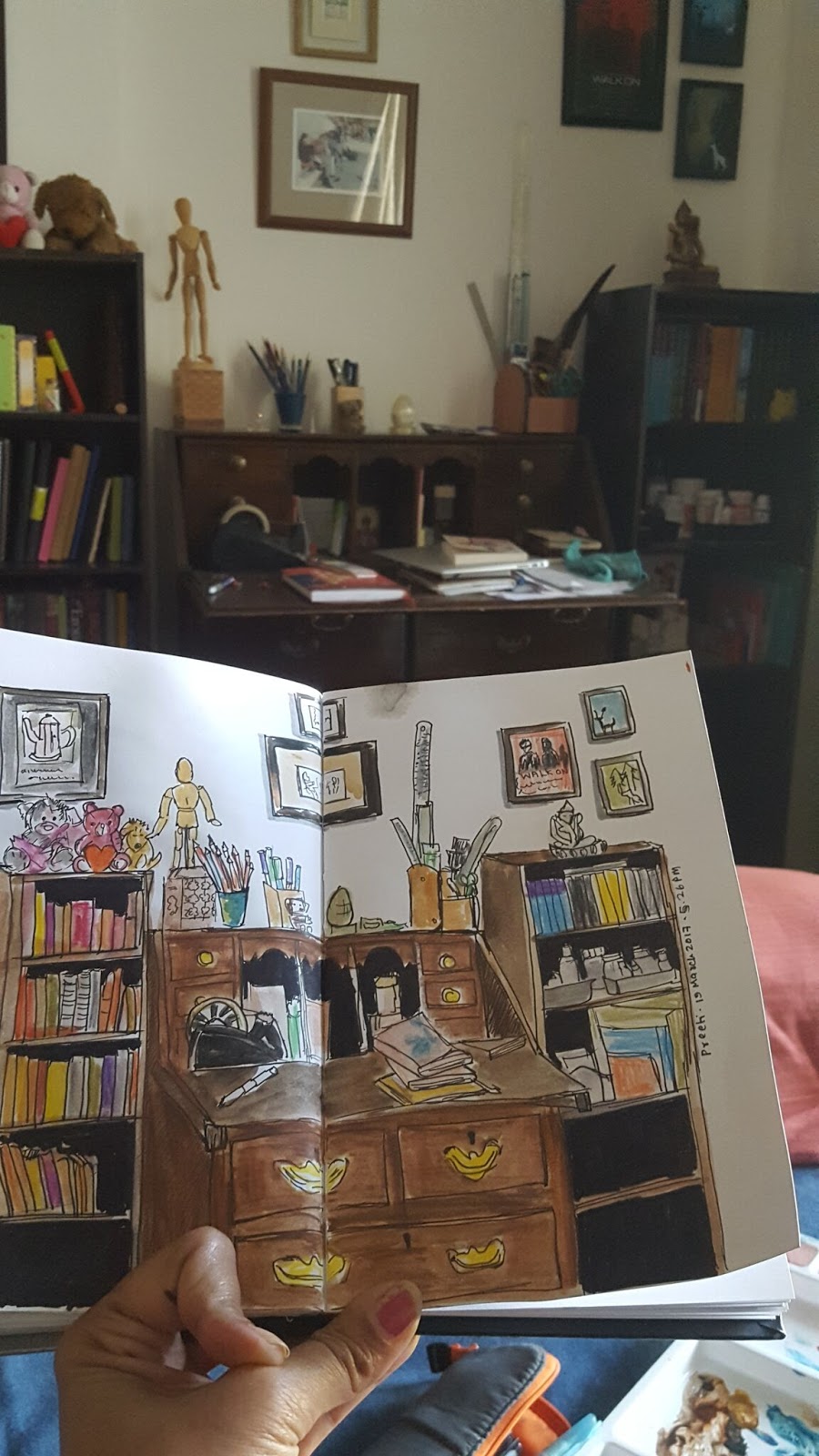 Spent the entitre morning sketching my desk, my most favourite place in the world. I really love my antique desk. I can sit for hours at my desk, sketching, writing, creating. I always get lost here.