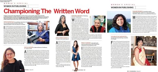 Check out the latest issue of Business World (dated 20th March 201, women's day special). Some prominent women in the publishing industry were asked to to name one book by an Indian woman author that they loved.