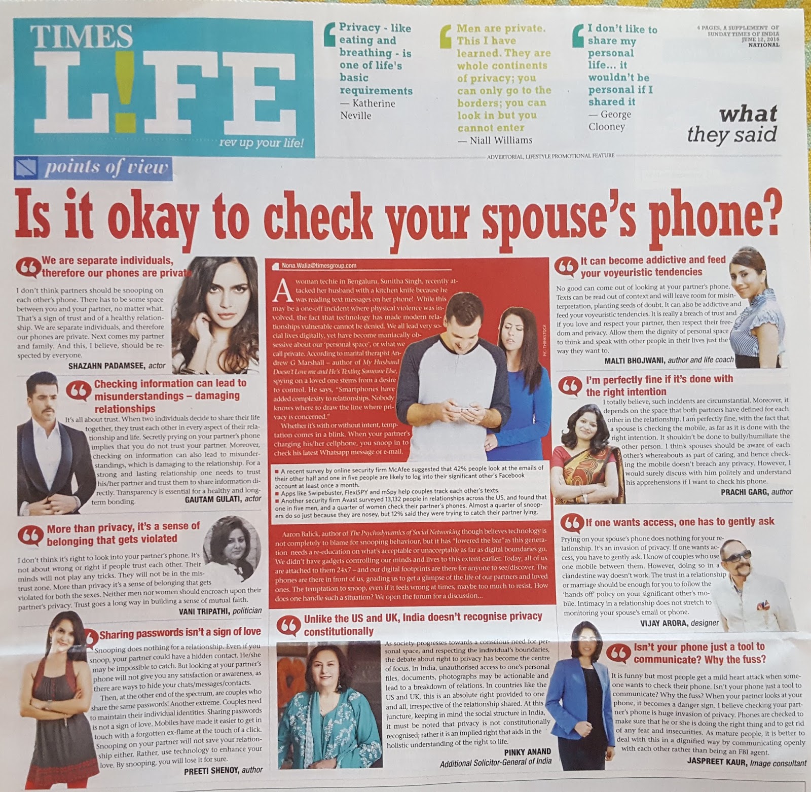 It was about whether it is okay to share passwords and check your spouse's or partner's phone.Here's what I said.