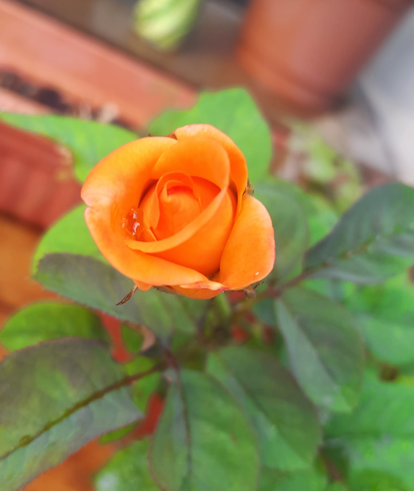 And finally--a rose that bloomed. Notice the dew drop inside it?