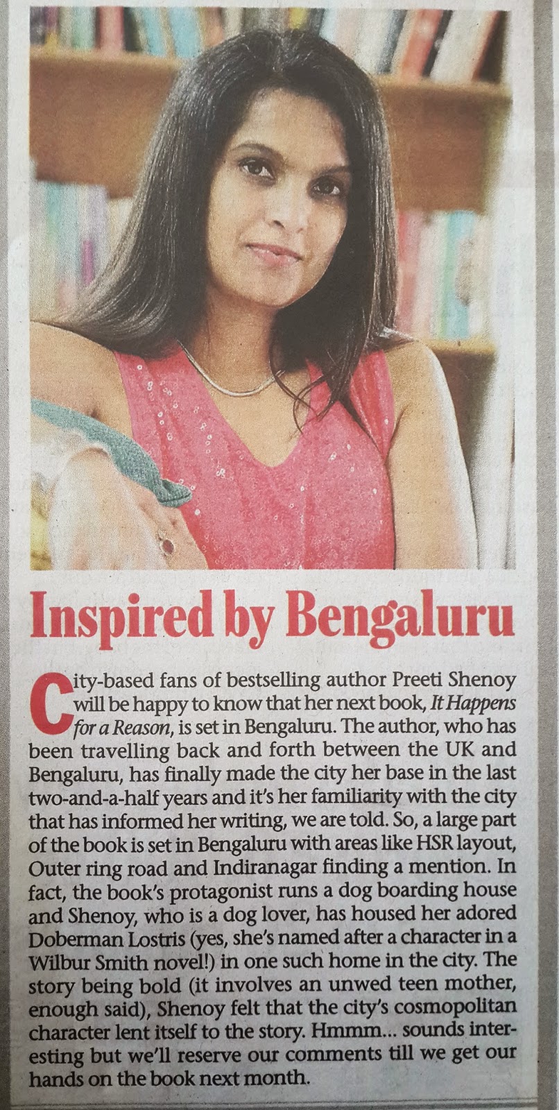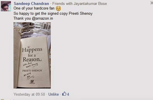 To celebrate 'It happens for a Reason' we are having a grand launch tomorrow (13th December 2014,Saturday) at Bangalore. It is an invite only event, and in case you wish to attend it, you can request an invite by sending a mail to the Westland Team : invite(at)preetishenoy.com