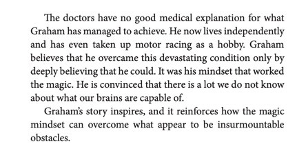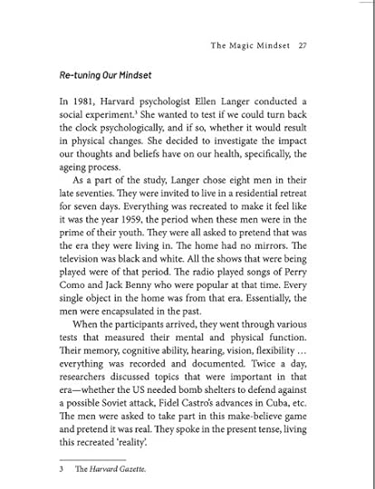 The Magic Mindset is full of inspiring anecdotes like these---about how people changed their lives by small actions they took. They were able to do this as they began thinking about their obstacles with a new mindset.