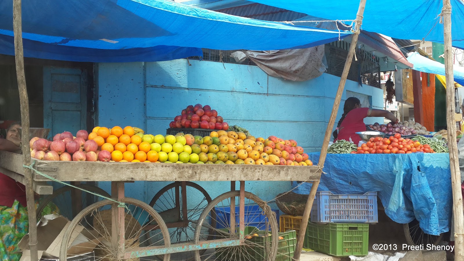 A picture I clicked in a small street bazaar in Bangalore, India. Loved the blue and the colours in this pic.