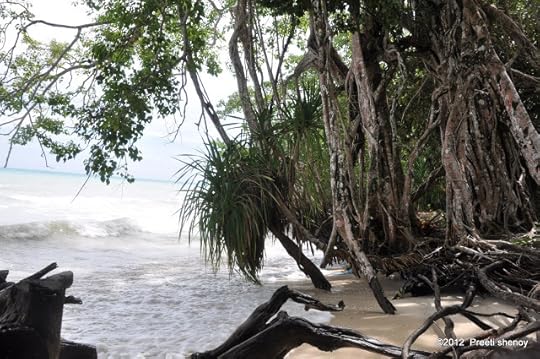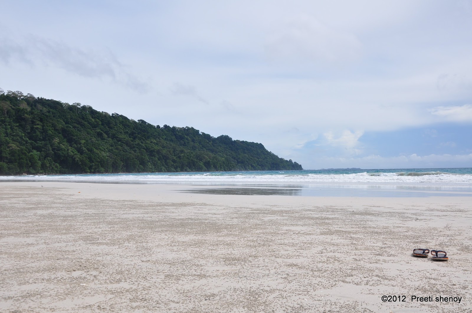 Soon it brightened up. The above photo was clicked by me, (notice the slippers in the pic? I felt they added to the composition) at Radhanagar beach at Havelock island . This beach is pristine, unpolluted and breathtakingly beautiful. It has also been named as one of the top beaches in Asia.