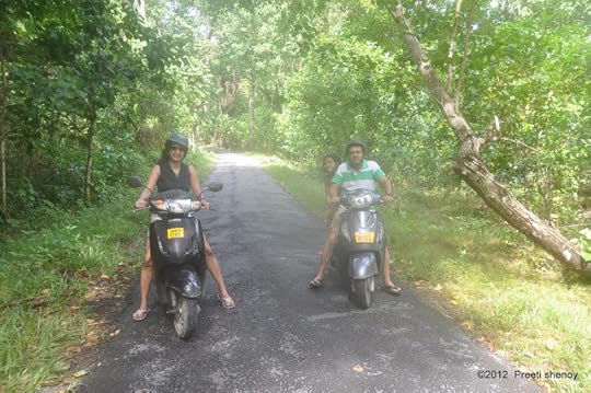 We had hired scooters and we drove everywhere around the island. My children were very surprised to know that their mom can actually ride a scooter (and ride it well). :) (I have driven two wheelers since I was 16 and four wheelers since the age of 17, but my children have only seen me in chauffeur driven cars :)). Half the island, came out and stared at me when I drove the scooter. I was told that Indian women do not generally drive the scooters--only the foreigners do. I found that cutely endearing.