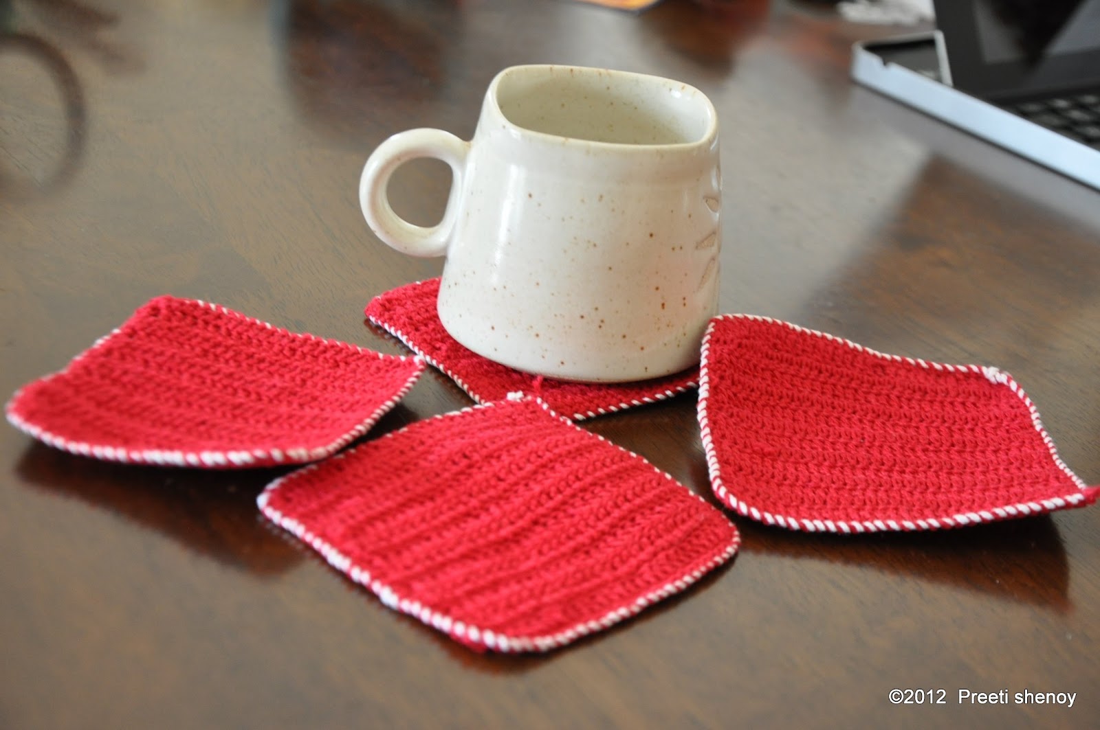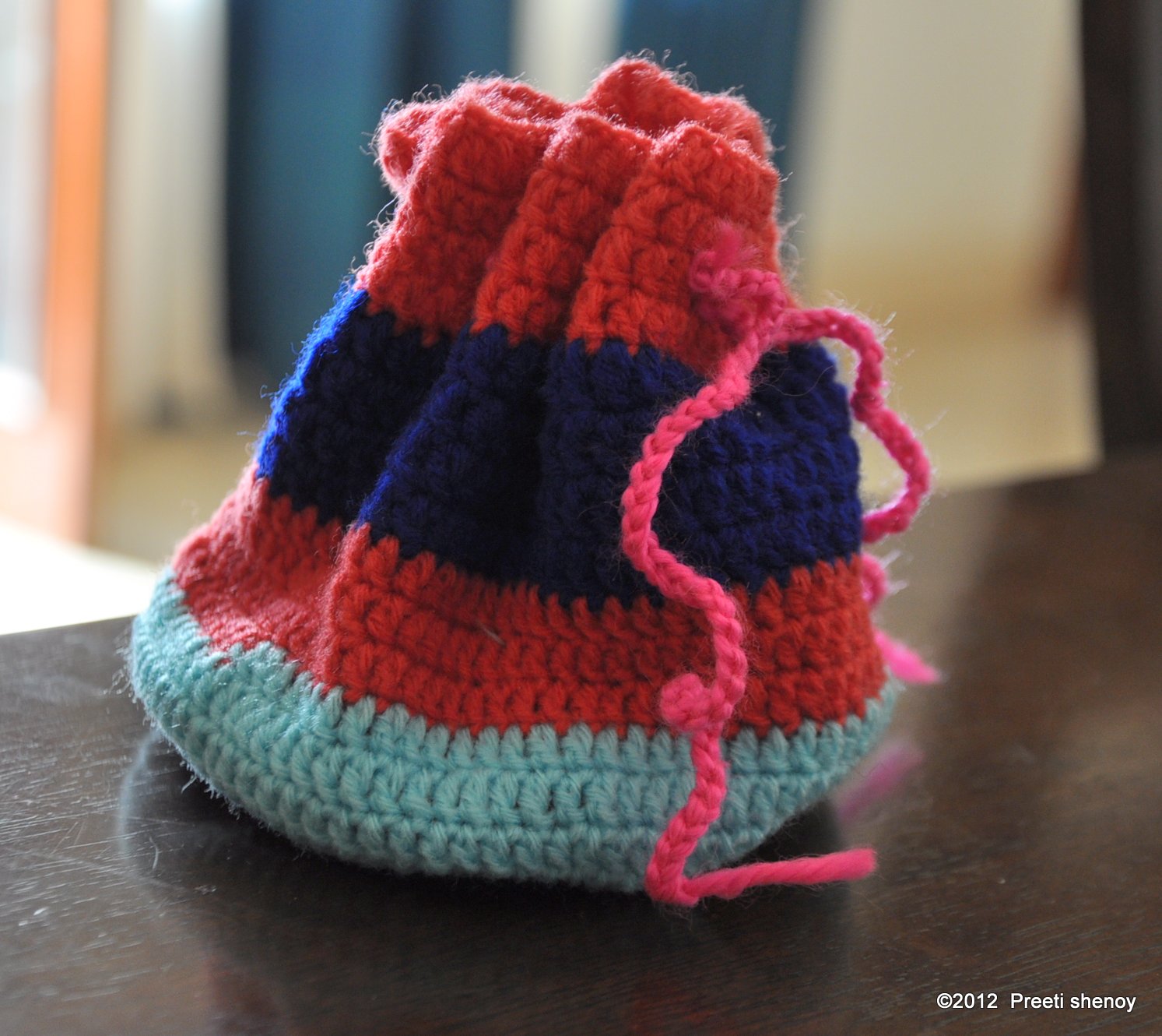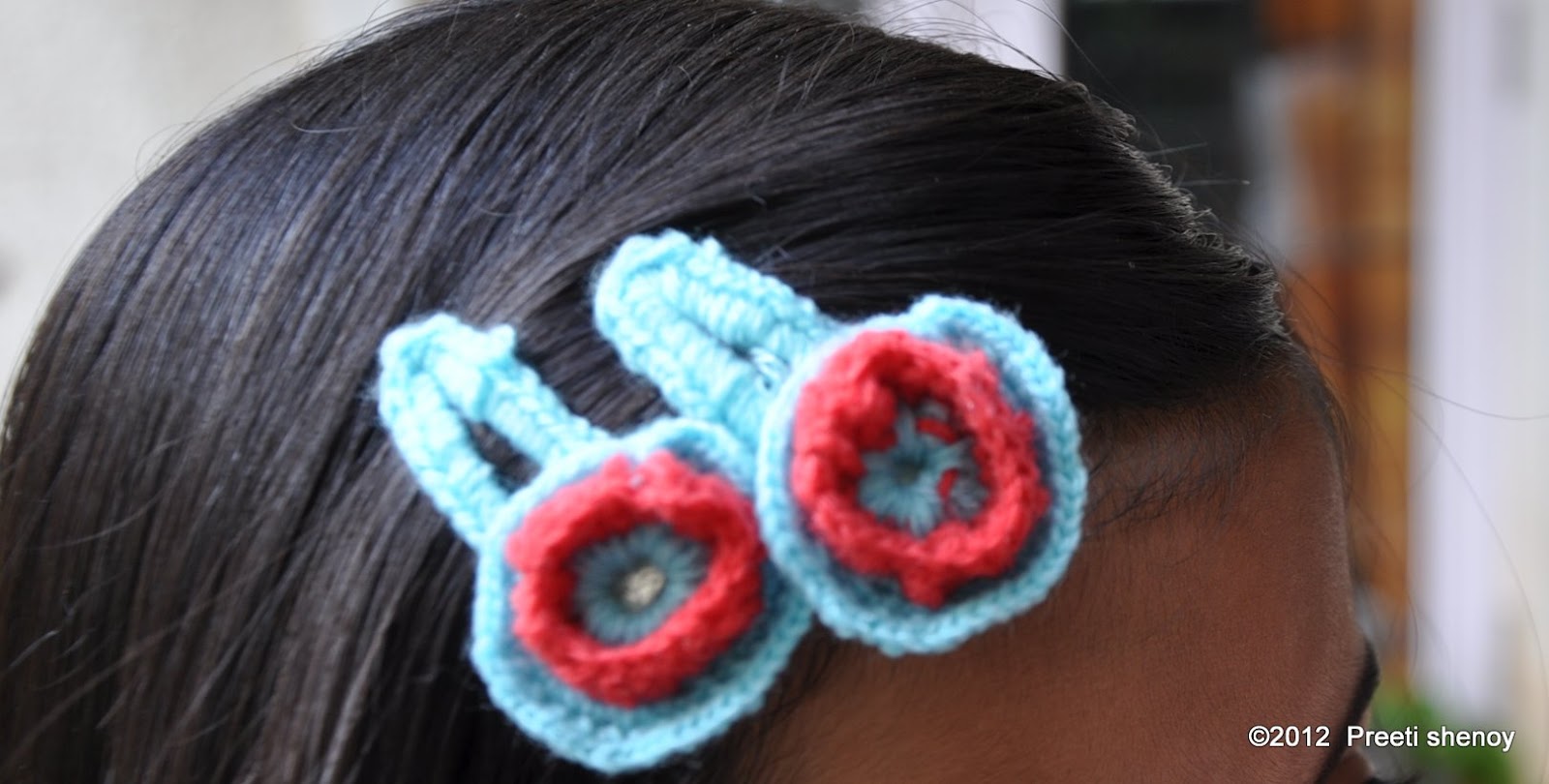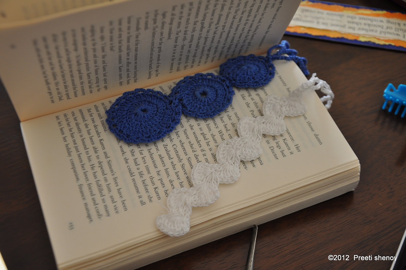Some weeks back Suma of Aalochane had gifted me some lovely crocheted stuff that she had hand-made. I totally loved them and felt so honoured to receive such a gift.When I brought them home, Keshrie saw them and her eyes lit up. She said she knows how to crochet and has fond memories of a herself as a little girl, sitting at her mother's knee, watching her mother crochet. She added (a bit wistfully) that if only she could get hold of some thread and crochet needle, she could make them. She has not been around much in Bangalore (She works as a house-help at another home too so her days are really busy) and had no clue where to buy yarn and needles.