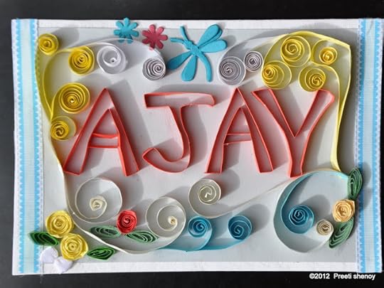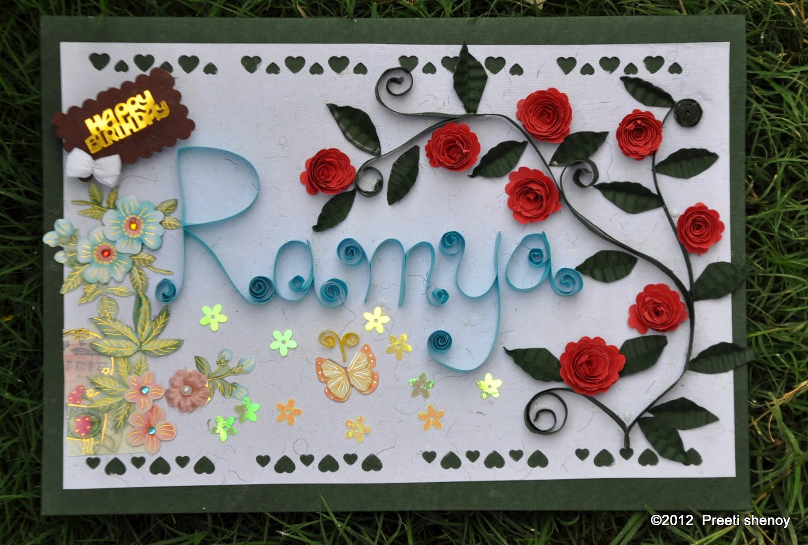 Like I have said before, what I earn from my writing is a thousand times more than what I make from my cards. I make cards because I like to be a part of people's happiness! Not to earn money! My cards aren't inexpensive either. (They start at Rs.400/- for quilled names) The amount of effort that goes into each card is humongous. Careful attention to each detail. And I feel elated when people appreciate that.