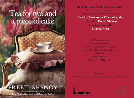 ps:I am blogging from Chennai. I am here for the launch of my third book 'Tea for two and a piece of cake' which is on the Asian Age best-seller top ten fiction list.. So if you are in Chennai tomorrow, I will be at Landmark, Citi centre from 6.30 PM onwards. Come and say a hello :)
