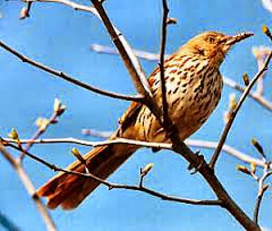 I followed it with my eyes up to where it perched on a branch on the maple tree that grows in the center of our front yard. I was curious to see what kind of bird it was. A cardinal? A robin? Blue jay? No, it was just a brownish-gray colored bird, probably a brown thrasher since that’s the Georgia state bird. I mentally shrugged. Just a nondescript bird. Or was it?
