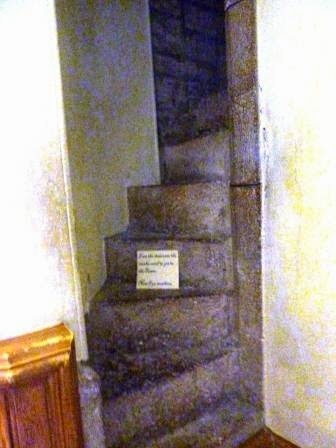 As usual I am fascinated by the other nooks and crannies in these old places. These stairs obviously originate back the the more castle-like structure of the house. No doubt the servants route from one place to another. The picture is grainy because without the use of a flash it was too dark to be seen, so I have brightened it.