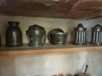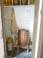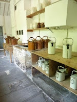 The cans at right are for hot water for a vareity of purposes, including carrying up stairs to the family for washing and bathing by chamber maids. Full up these cans weigh about thirteen kilograms, a heavy weight for a young lass of about thirteen. Sigh. No doubt that would have been my job.