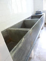 Here we are exploring what at Saltram is called the Wet Larder. Not because of the sinks, called salt tanks, but because this is where wet work is done.(Not the kind you see in the mob movies, but it was used for raw meats. And nothing else.