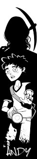 I designed these as giveaways at conventions when we pitching swag for MK. I have shared the front pictures before: the foreground kids are mine, whereas the silhouetted adults were drawn by artist Jordi March, who was also the photographer for the story on the Pennaquick Telegraph in the book.