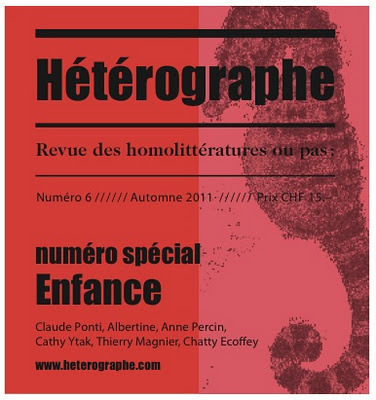 est un numéro spécial Enfance, vue sous l'angle de la différence, la marginalité, l'homoparentalité, le rapport à la norme, etc. On y trouvera ma contribution, ainsi que celles de Thomas Gornet, Cathy Ytak, Thierry Magnier... et le grand Claude Ponti !