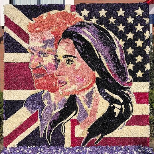 Last weekend in Lisse, The Netherlands, Paul Clemens and friends exhibited a flower mosaic made of 50,000 hyacinth flowers based on one of my paintings of Prince Harry and Meghan Markle. Their team won first prize!