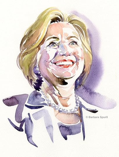 Watercolour portrait of Hillary Clinton, 9 x 12 inches, ©Barbara Spurll