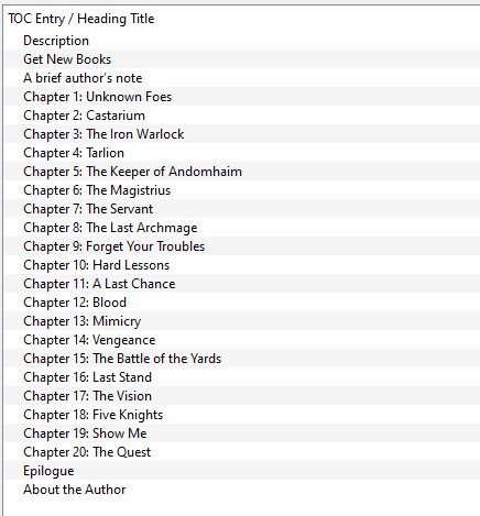 I am far enough along in DRAGONSKULL: BLADE OF THE ELVES to share the table of contents, which you can see below!