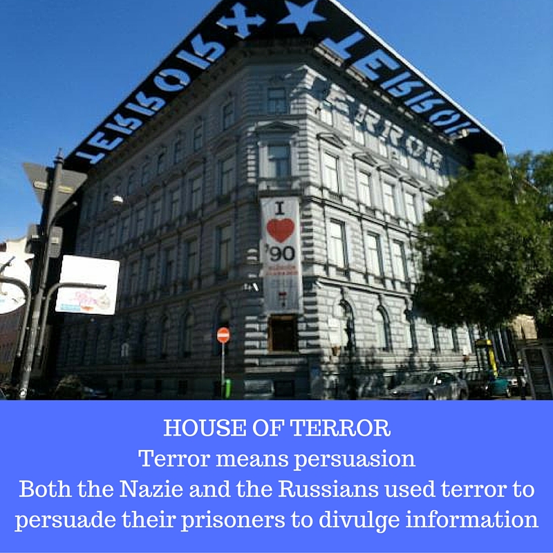 There is something called The Terror Museum in Budapest which is located not far from me. It was the actual headquarters of the Nazi command, followed by the Russian command. The museum is living proof of what went on under both the Nazi and Russian rule. It took a long while for me to work up the pluck to enter that museum. I finally realized that I had a responsibility to what happened to those who died during this terrible time. I found the museum equally split between the Nazi occupation of Budapest, and the Russian occupation. Both were devastating. Judging by the name, I thought the Terror Museum would resemble a Hollywood movie, exaggerated and overdone.I was wrong.