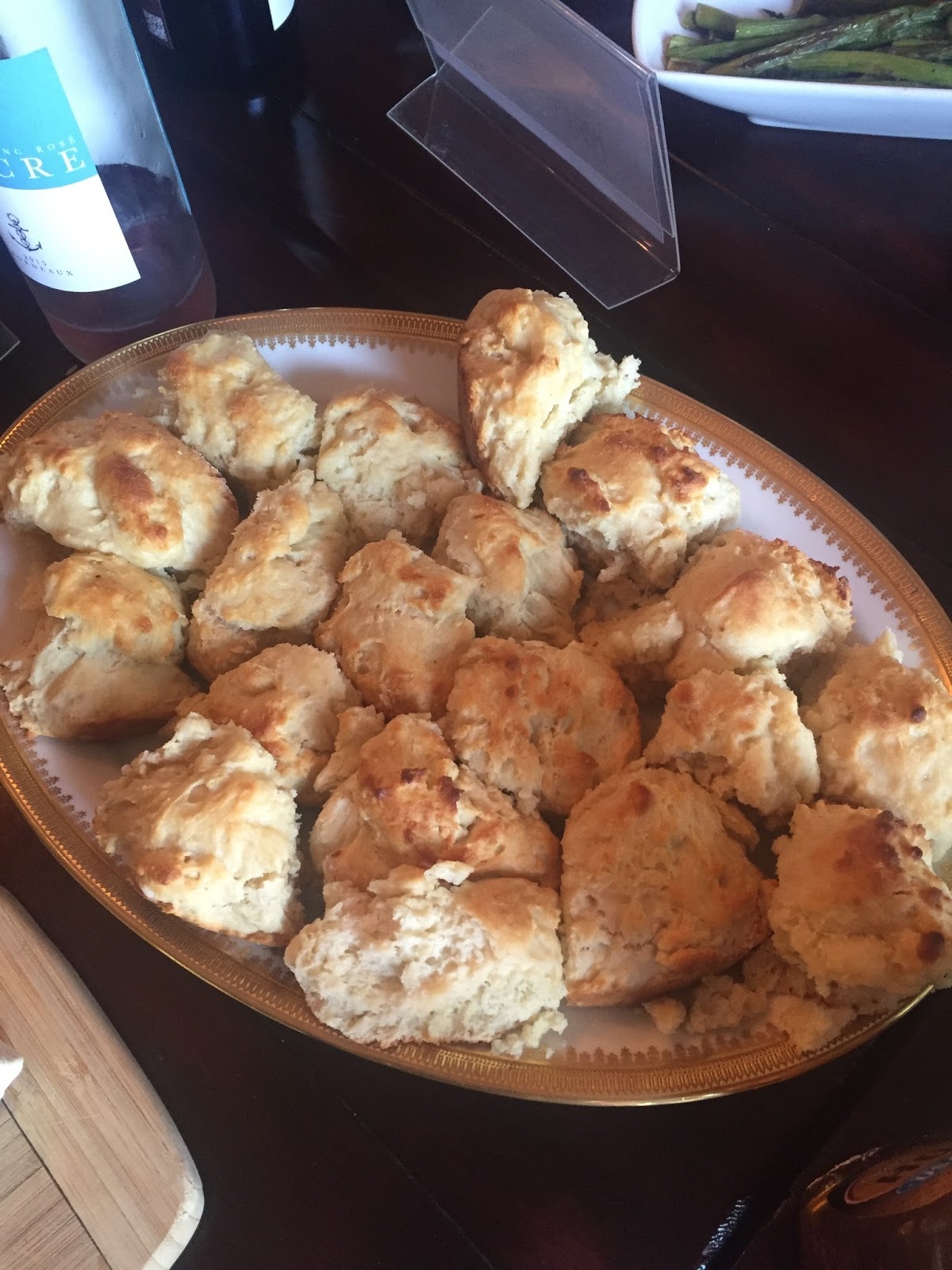 The next recipe we tried was Mrs. Bug's Buttermilk Biscuits! They were so freaking good--and I stole a couple from my guests to try the next day. Some biscuits don't last overnight. These DID. We had a biscuit connoisseur with us, and she said they were the best she'd ever had. They were moist, dense and made me want to curl up on my couch and re-watch The Wedding episode.