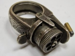 A ring gun with extra bullets carried in a bullet necklace