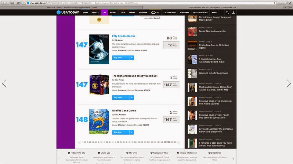 Today, I have so many things to be thankful for--my family, my friends, my health, my demon puppy, the fact that the earth still spins and that I woke up to enjoy it. But today, I am also EXTREMELY thankful to my readers. Because of you, I ...have one of the best jobs in the world AND you all pushed me onto the USA Today Bestseller list!!! That's right baby!!! I am officially a USA Today Bestselling author!!!!!!!!!!!!!! I can't stop smiling and singing Woohoo!!! Time. To. Partay!!!!! XOXO Eliza Knight