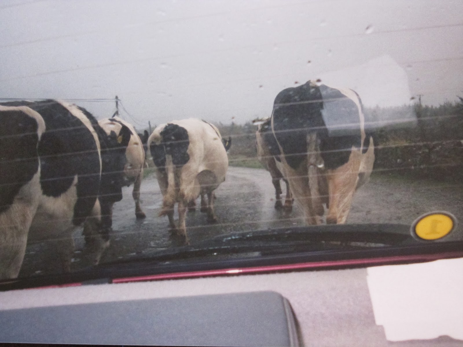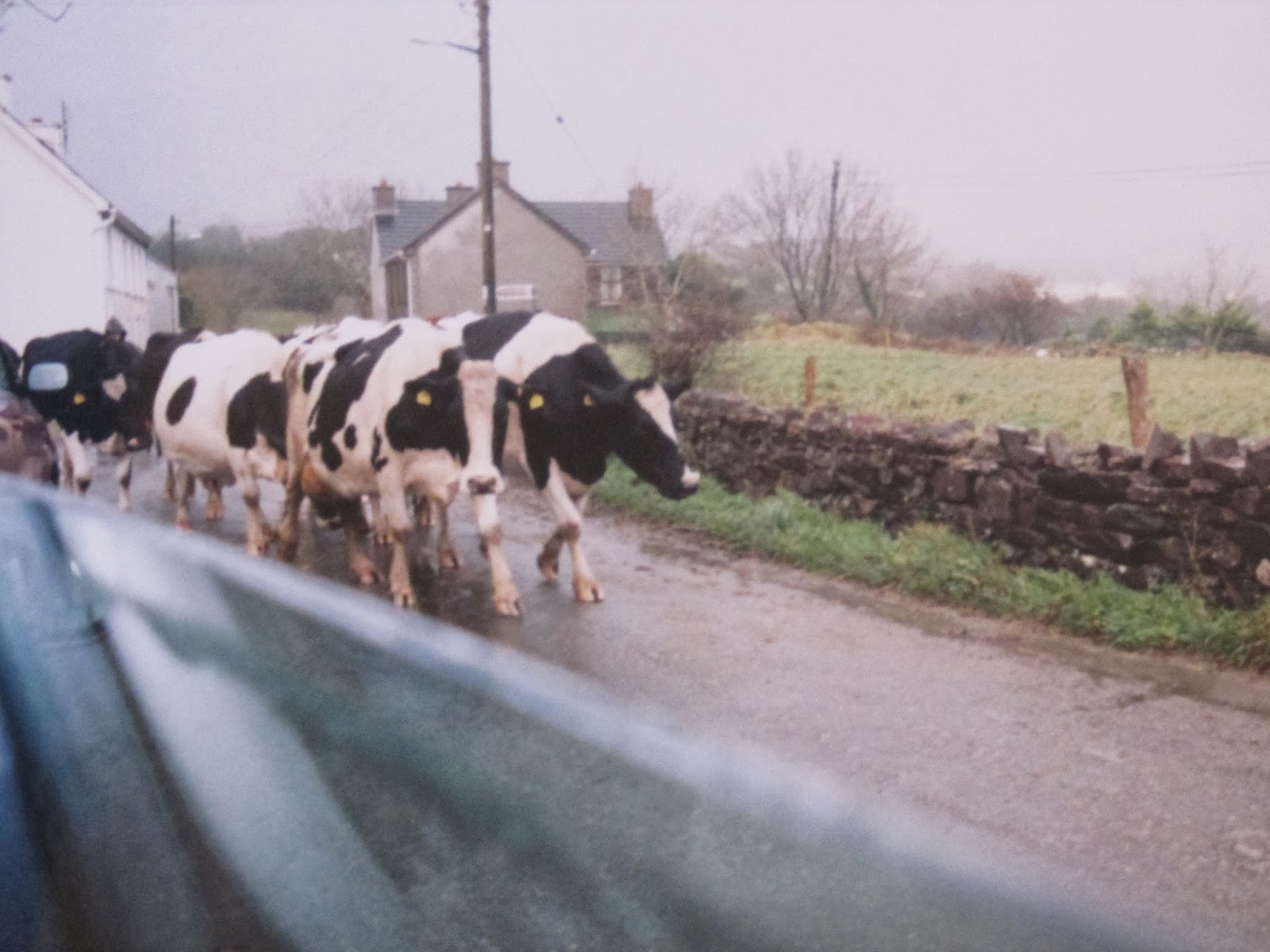 When I went to Ireland a decade ago, we had to pull over onto the side of the road because a herd of massive, black and white cows were coming down the road. I'd never seen cows so huge before! I was amazed then with the differences between American cows and Irish cows. Subsequently, did you know that dairy cows are black and white, or brown and white? (Holsteins specifically are the white/blacks.) Now, I never did find out exactly why the Irish cows looked so much larger, but I'm guessing, looking back at pictures, that it might have had something to do with sitting in a tiny car :)