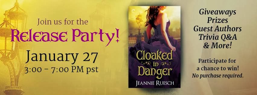 Today, myself and several other amazing authors will be participating in Jeannie Ruesch's release party! So excited for this book--Cloaked in Danger!