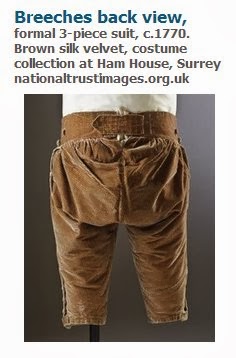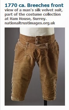 Breeches before the turn of the century were looser fitting around the hips and made of wool, cotton, or linen, while some silk breeches were still worn on very formal occasions or at court. But coats became higher cut in the front, so waistcoats and pants were more exposed and the style of pants needed to change. Breeches were fall-fronted with a broad fall, the early ones being very wide, hip to hip, and gradually becoming narrower, hip bone to hip bone. Waistbands were buttoned and then the fall closed and buttoned over the top like a bib. A French Fly was fastened down the centre, but Englishmen resisted this style as it was considered a racy French style.