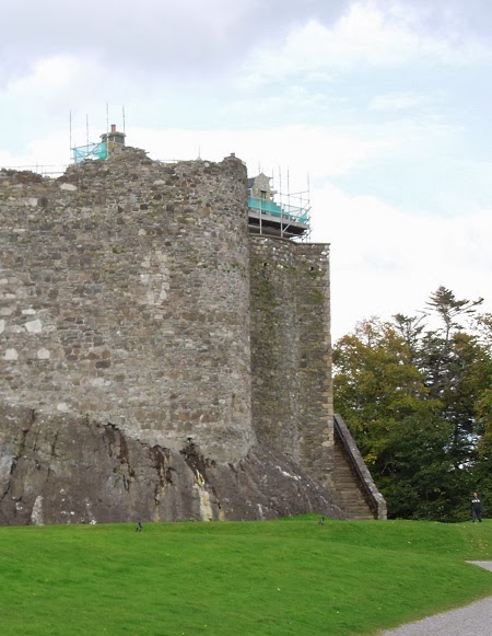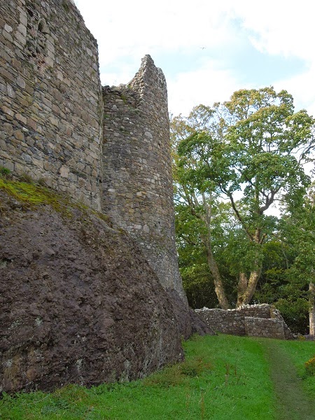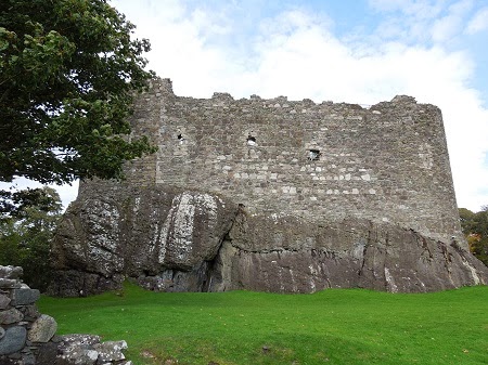 Another view inside the castleThe original castle had no projecting corner towers, just the massive 11 feet thick walls. The stonework would not have been visible. The walls would've been harled (coated with white lime render.) Harling provides a long-lasting weatherproof shield and was often used on Scottish castles and other buildings. Traces of the harling still survive at Dunstaffnage.Duncan's son Ewen probably built the three round towers onto the castle, and constructed or enlarged the hall inside.
