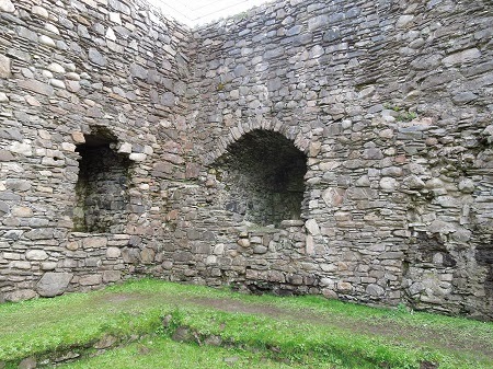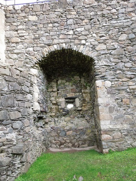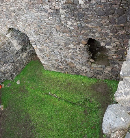 The courtyardThe area of the castle wall below the wall-walk has several recesses which originally gave access to narrow arrow slits. Later they were altered for guns. There may have been buildings here in early times.