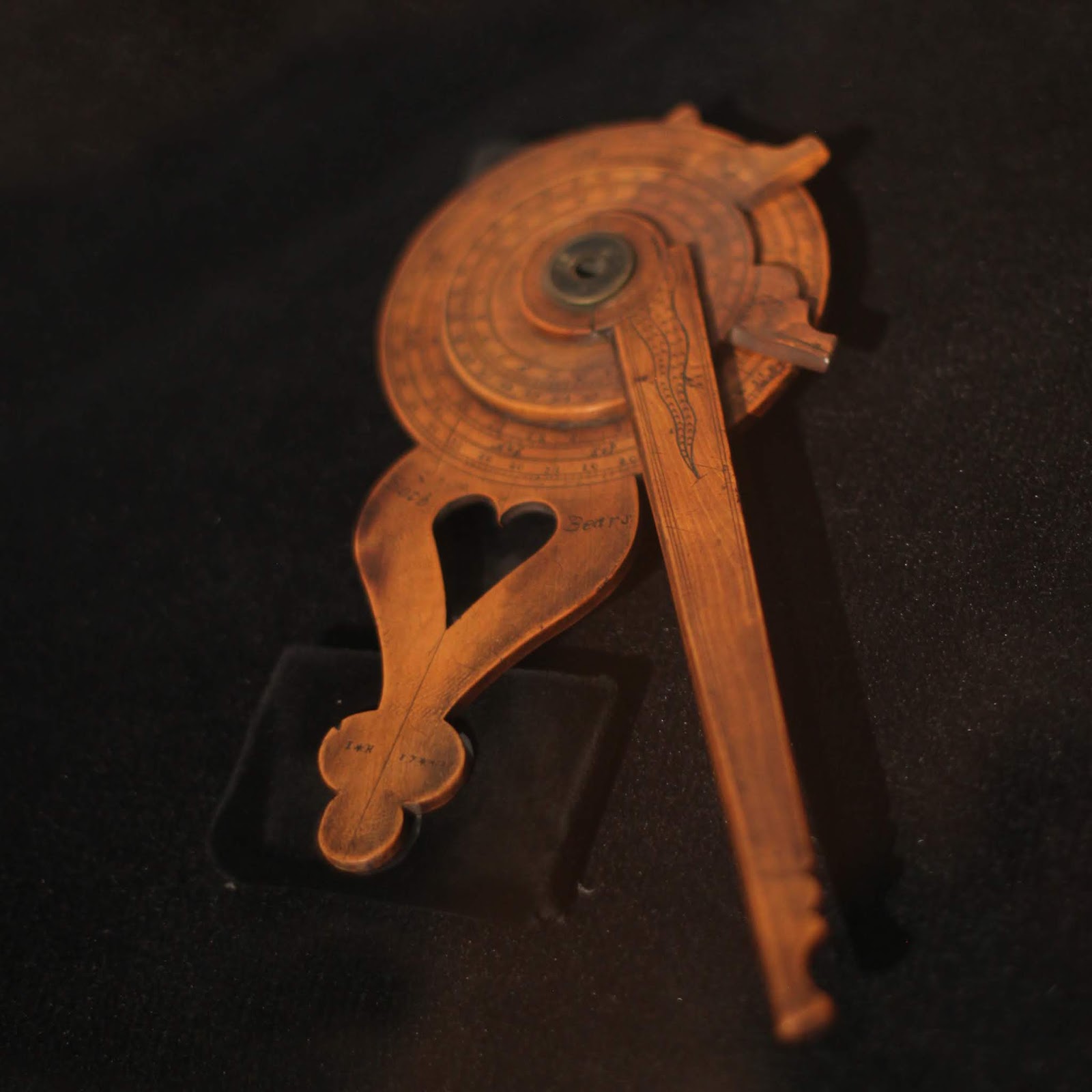 NocturnalLog line - a long rope on a spool with a board (log) at the end used to measure a vessel’s speed. Knots were tied along the rope at six feet intervals. Six feet equaled one fathom. When the log line is thrown overboard, the number of knots passing over the railing in thirty seconds were counted, thus giving the sailors a rough estimate of how fast they were going in knots—the nautical measurement much like how fast a car goes in miles per hour.Nocturnal - based on the time of year to ascertain the time of night using the location of the stars such as Polaris, Ursa Minor, and Ursa Major. It uses a set of dials—months, hours, and the location of stars—and has a pointer. Important when calculating tides.