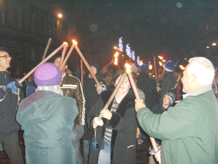 The Torchlight Procession, which takes place on December 30th, is a version of the Up Helly Aa Fire usually associated with the Shetland. Originally, the event began in the 1880s to mark the end of the Yule season. It grew out of the older tradition of tar barreling, where young men would drag tarred barrels through the streets and raise hell. Gradually it became more civilized, with people walking through the streets with torches blazing. At the end of the walk, everyone would throw their torches into a replica of a Viking ship. For more information on the festival, visit www.uphellyaa.org.