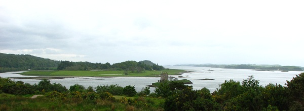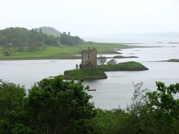 Castle Stalkerby Vonda SinclairCastle Stalker (Caisteal an Stalcaire) sits in one of the most dramatic and beautiful settings in Scotland, on a small island (or islet) known as Cormant's Rock in Loch Laich, just off Loch Linnhe in Port Appin, Argyll, Scotland. If you're traveling there, it's midway between Oban and Glen Coe. On our travels, because we had gone through Glen Orchy, we went ten miles or so off route just to see the castle and eat a nice lunch at the Stalker View Café. From these photos you can see it was a very cloudy day and it started raining while I was taking pictures.