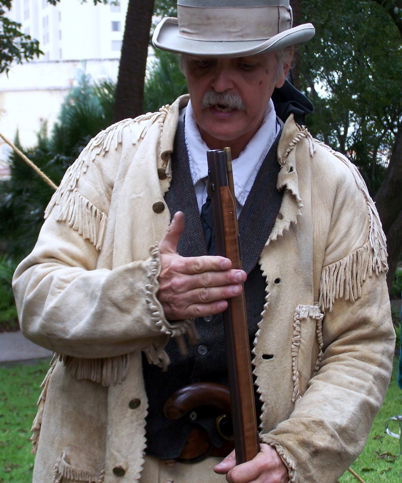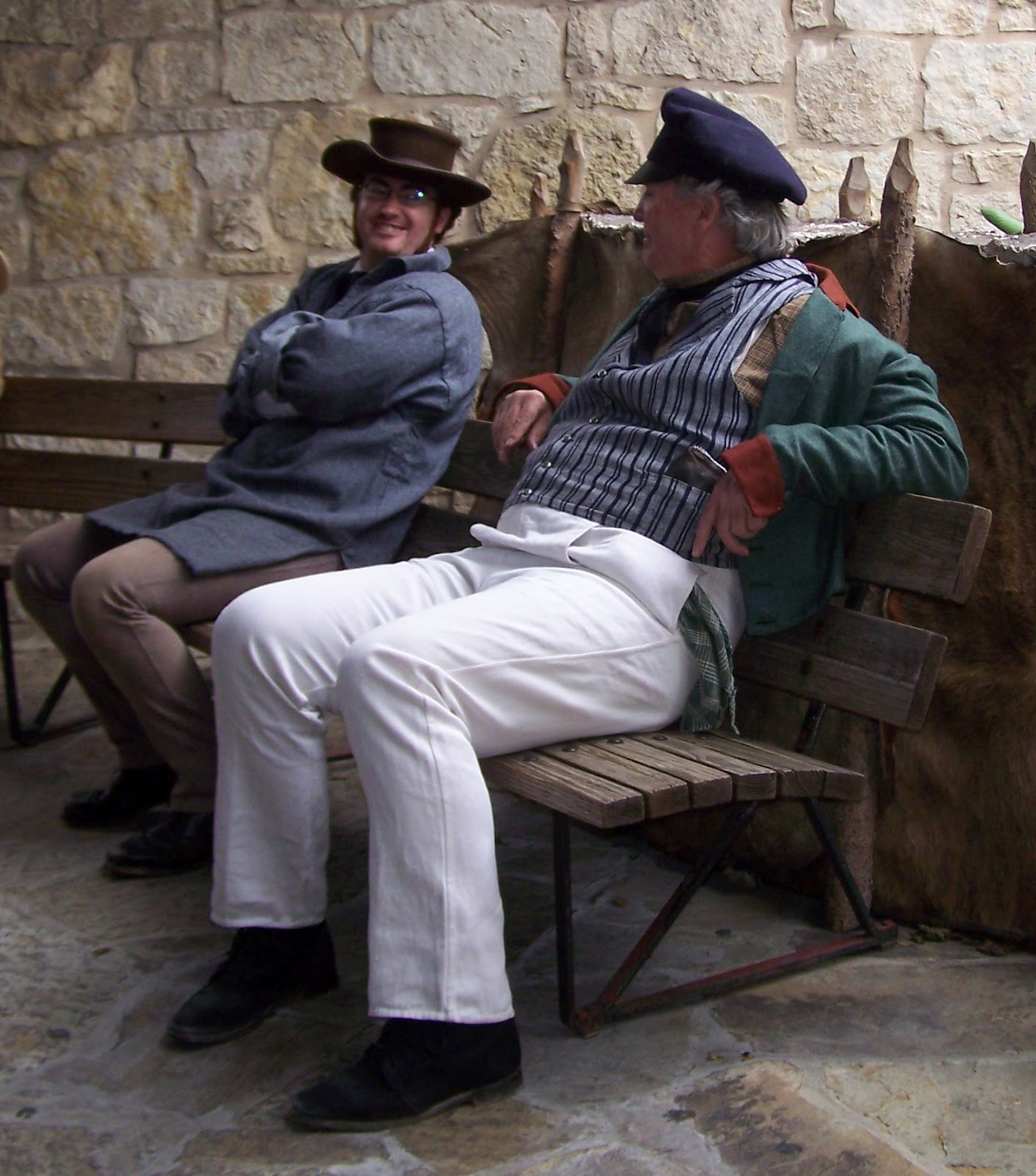I think very fondly of re-enactors when I am working up a book. I consider them as open-air historians. What better way is there to get an idea of how something was accomplished; starting a fire from flint and steel, to learn the heft and feel of an 1836 Colt Paterson revolver and the method of loading it with lead ball and black powder, or how a gentleman of the 1830s on the Texas frontier might have combined the height of fashion with local accessories. Re-enactors do exacting research about every finicky detail, and the results can be viewed in detail and in three dimensions. Movies and television are a less than satisfactory substitute. This is because of the dimension thing, and often because the movie costumer doesn’t take nearly enough care to be faithful to a specific period. Visualizing the clothing worn on the American frontier may be an especial challenge, since nearly 70 years’ worth of genre movie westerns have fixed a certain image in the imagination – that of the cowboy, who was really only peculiar only to a very limited part and for a relatively short period of time.