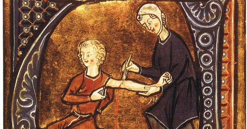 Pee was used…a LOT. Pee, especially from a pregnant woman, was bathed in, used for soaking and...yes...even drank. There is no scientific evidence this would ever have helped. However, Romans did swish with pee to whiten their teeth, and it actually has been scientifically proven to work. (I’ll still with tooth strips, thank you very much)Pills were encased with gold for the high nobles and incredibly wealthy, so any effectiveness of the pill would never even have helped. Then again, some of the cures could kill you then, so in some cases, this might have saved them from the cure.Blood letting was to balance the four humours, blood, phlegm, yellow bile, black bile as it was believe illness was an offsetting of these, and bleeding would put it all back in harmony.