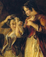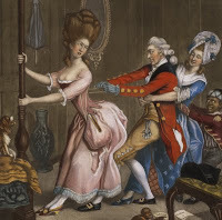 Detail from The Scottish Bedroom by Sir David WilkieAnd it was not until the 1770s when French fashion was leaning toward a simpler style of dress that there was less stiffening in a pair of stays. Women began to eschew whalebone and buckram, preferring quilted linen, and for ease of wear, stays began to be often fastened in the front with strings or ribbons and worn for deshabille, jumps had finally come into their own! You can read more about Antonia, Dowager Duchess of Roxton and her preference for wearing jumps and the effect this sexy undergarment has on her suitor, East India Merchant Jonathon Strang in Lucinda Brant's latest novel,