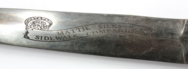Mattie Silks was born Martha Ready in Pennsylvania 1845. High spirited and competitive, she had no inclination to work as a schoolmarm, considered the only respectable career for a woman during that era. Instead, Mattie knew a good opportunity when she saw it. She began her career as a madam in a rented flat in Springfield, Illinois where she took in twelve “Upstairs Girls.” Although considered a great beauty, she never resorted to prostitution herself. With a sharp business acumen, she expanded her “pleasure palaces” to include Dodge City, Kansas, and Denver, where she quickly became one of the best-known madams in the west. She took great pride in seeing that her girls were well taken care of. She even designed a Mattie Silks knife, which she gifted to her ladies to wear on their person on the streets of these wild towns.