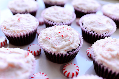 Frost the cupcakes however you want, then sprinkle on more crushed peppermints.