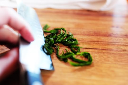 And slice them into strips. You’ll need a whole bunch more than this. I’m just demonstrating.