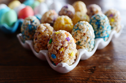 Okay, let’s start this whole thing over. Imagine that the Easter Bunny’s wife is a chicken, and imagine her laying an egg. These sweet, crispy eggs with a fun candy surprise inside would be what came out!