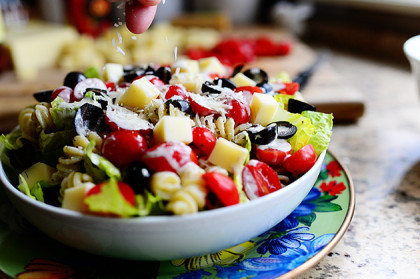 Then toss in a little grated Parmesan and stick the pasta in the fridge until it’s cold.